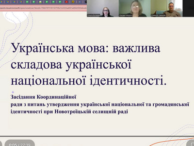 Переглянути: Відео-запис і протокол 4 засідання координаційної ради з питань утвердження української національної та громадянської ідентичності при Новотроїцькій селищній раді
